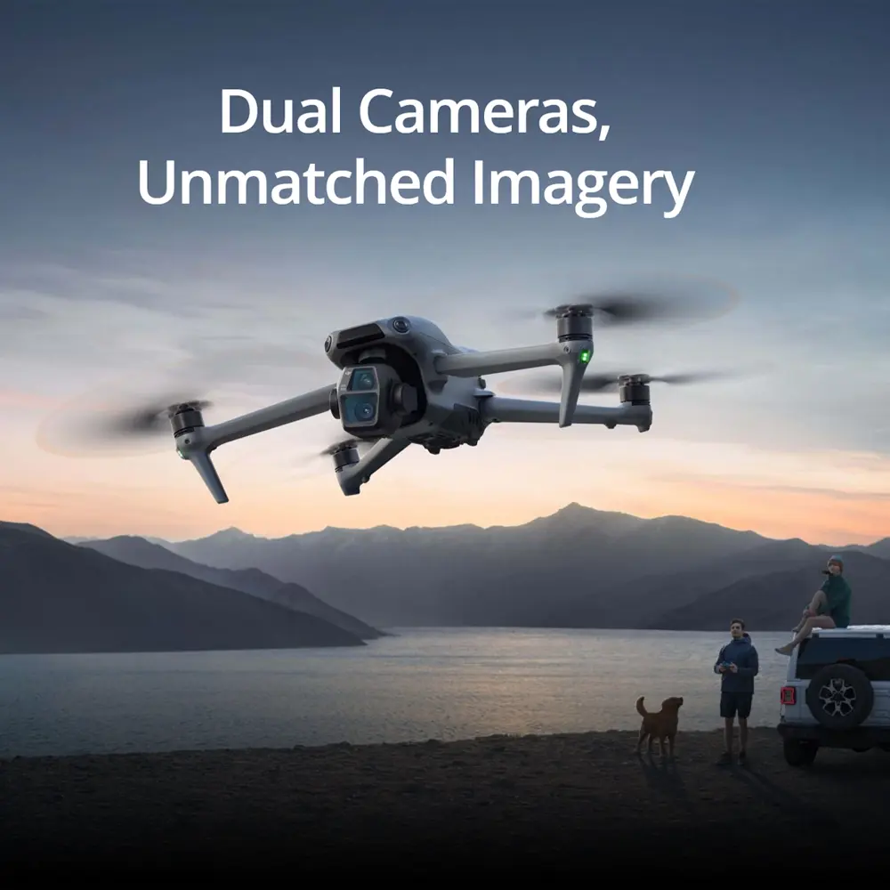 A dual-camera drone designed for travel photography, SkyDuo Pro integrates a suite of advanced technologies. Featuring a 1-inch-CMOS primary camera and a 70mm medium tele camera, each with up to 14 stops of dynamic range, [1] Air 3S captures landscapes, portraits, and more in stunning detail. Both cameras support the new Free panorama feature, which allows flexible shooting-range selections. Additional new highlights include nightscape obstacle sensing [2]and next-gen Smart RTH for enhanced safety during nighttime photography. In each and every way, SkyDuo Pro is designed to maximize every aerial moment.